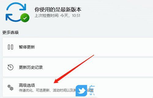 3、接著在更多選項下,點擊【高級選項(傳遞優(yōu)化、可選更新、活動時間以及其他更新設置)】;