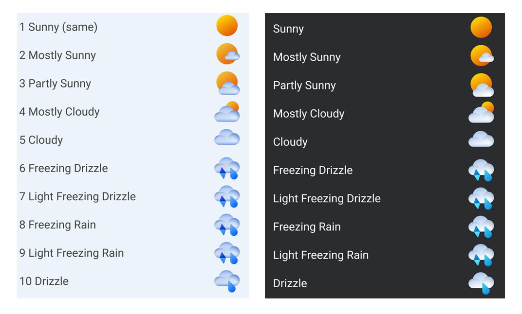 圖標的整體設計保持不變,但現在它們采用了稍微不同的色調和顏色,在深色和淺色背景上有更好的對比度。微軟表示,更高的對比度和新的色調使信息更加清晰,尤其是對于視力較差的用戶。可以在下面的截圖中看到兩套圖標之間的區別: