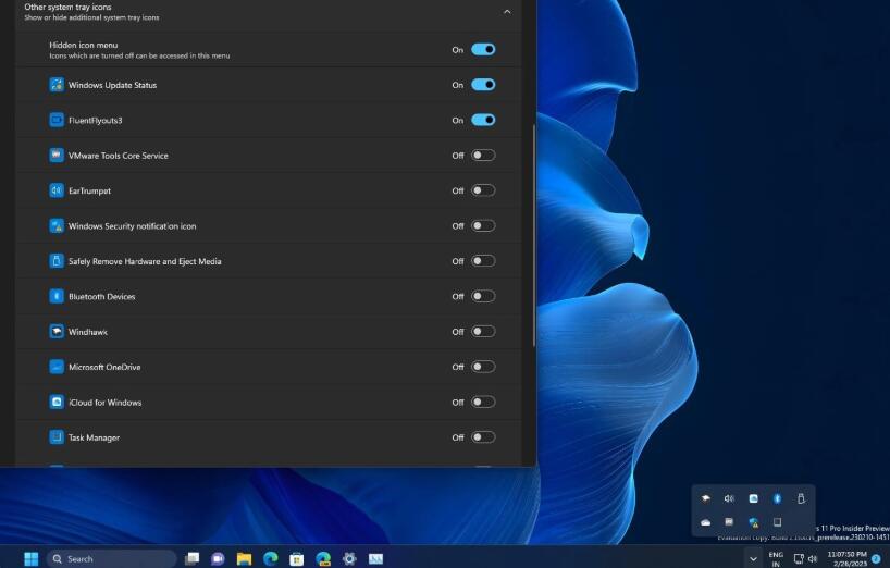 這個為平板電腦優(yōu)化的任務欄還帶來了一個現(xiàn)代化的系統(tǒng)托盤彈出窗口,新窗口可以直接通過設置應用程序進行管理,而且還支持拖放。