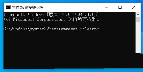 1、命令提示符中,輸入并按回車執(zhí)行【systemreset -cleanpc】命令,可以喚起系統(tǒng)重置;