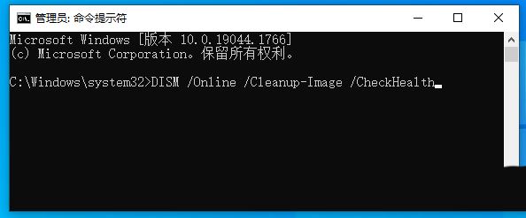 命令提示符中,輸入并按回車執(zhí)行【DISM /Online /Cleanup-Image /CheckHealth】命令,該命令可以用來修復(fù)Windows系統(tǒng)鏡像、安裝程序、恢復(fù)程序和PE系統(tǒng)