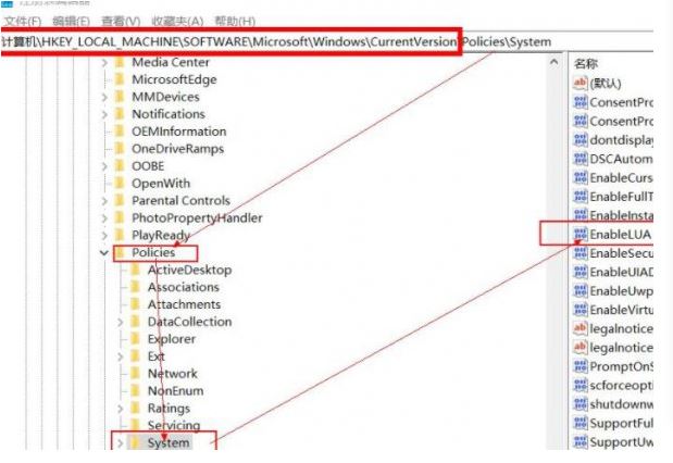 HKEY_LOCAL_MACHINESOFTWAREMicrosoftWindowsCurrentVersionPoliciesSystem。