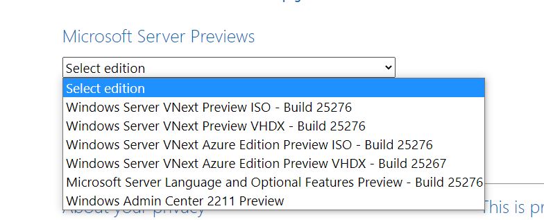 選擇 Windows Server VNext Preview ISO - Build 25276