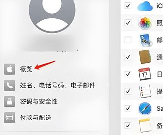 2、然后在appleid設置頁面后點擊概覽。