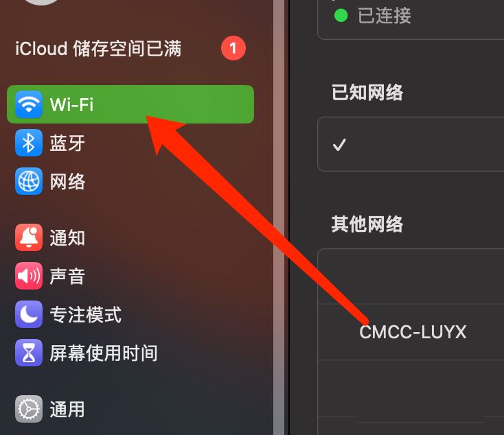打開MacOS13的設置頁面,點擊Wi-Fi。