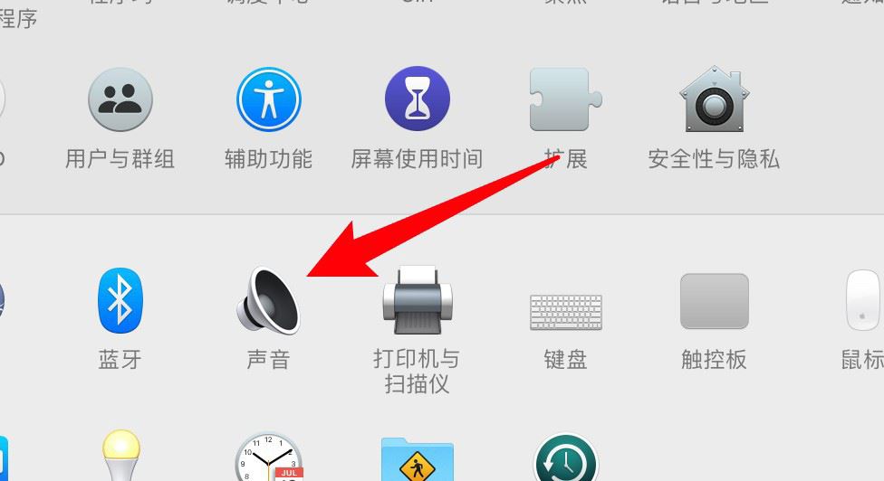 打開系統(tǒng)偏好設置,點擊窗口上的聲音選項。