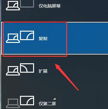 3、所以,如果你希望投影儀和電腦主顯示器同步顯示相同內容的話,只需要選擇“復制”模式,即第二種模式。