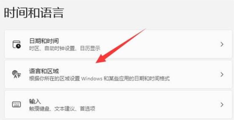 2、進入左邊“時間和語言”,打開其中的“語言和區域”。