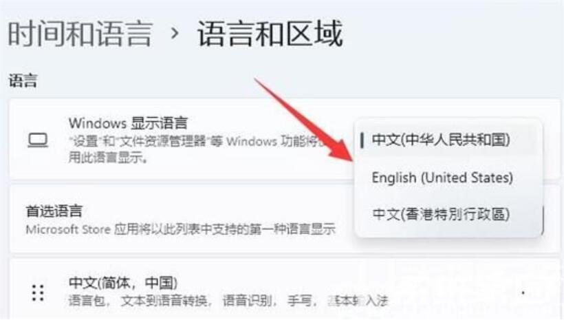 3、將windows顯示語言改為“English”,這樣就能取消中文了。