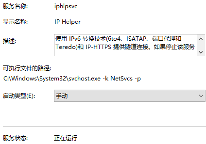 4、回到服務中尋找ip helper,右擊選擇屬性,將“啟動類型”改為手動。