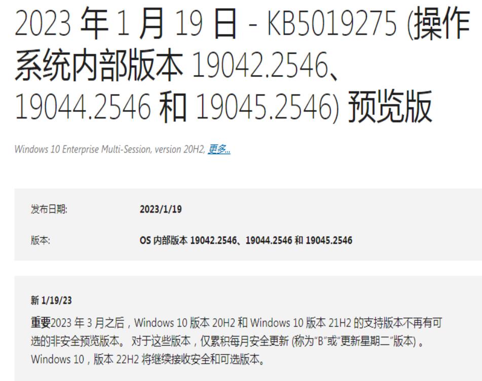 Win10 Build 19045.2546更新補(bǔ)丁KB5019275發(fā)布(附下載地址)
