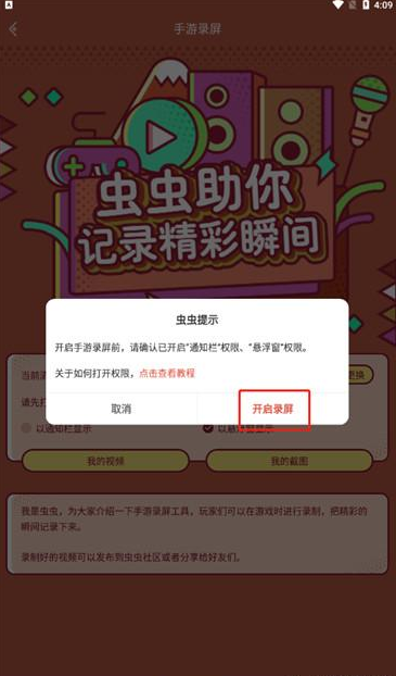 如果是第一次使用的話就需要點擊【開始錄屏】并且完成授權即可;