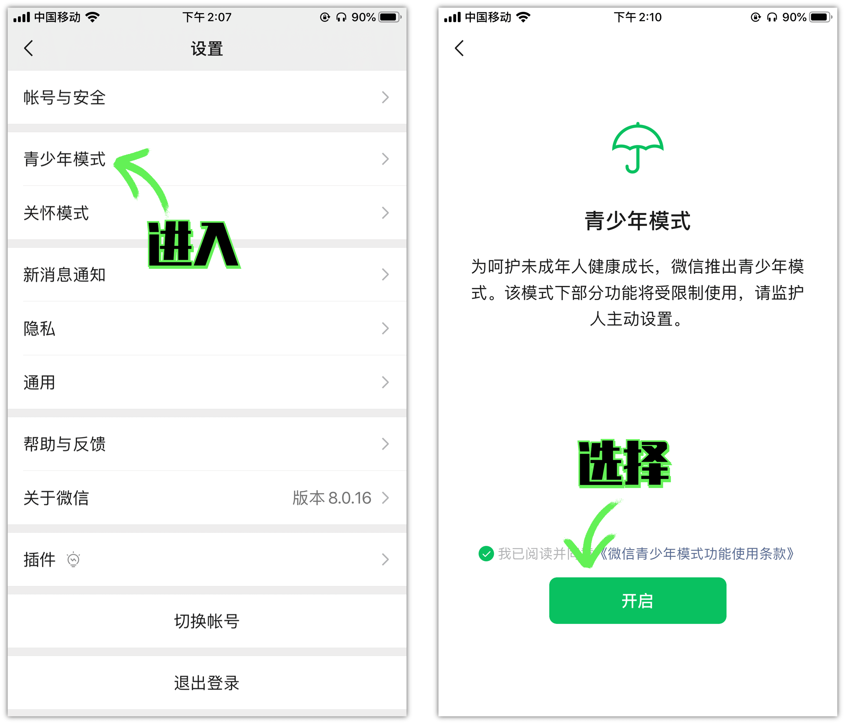 首先,請打開微信應用。在微信主界面,點擊右下角的"我"圖標,接著選擇"設置"選項。在設置頁面中,您會找到一個名為"青少年模式"的功能。請點擊這個功能,進入青少年模式的設置頁面,點擊“開啟”。