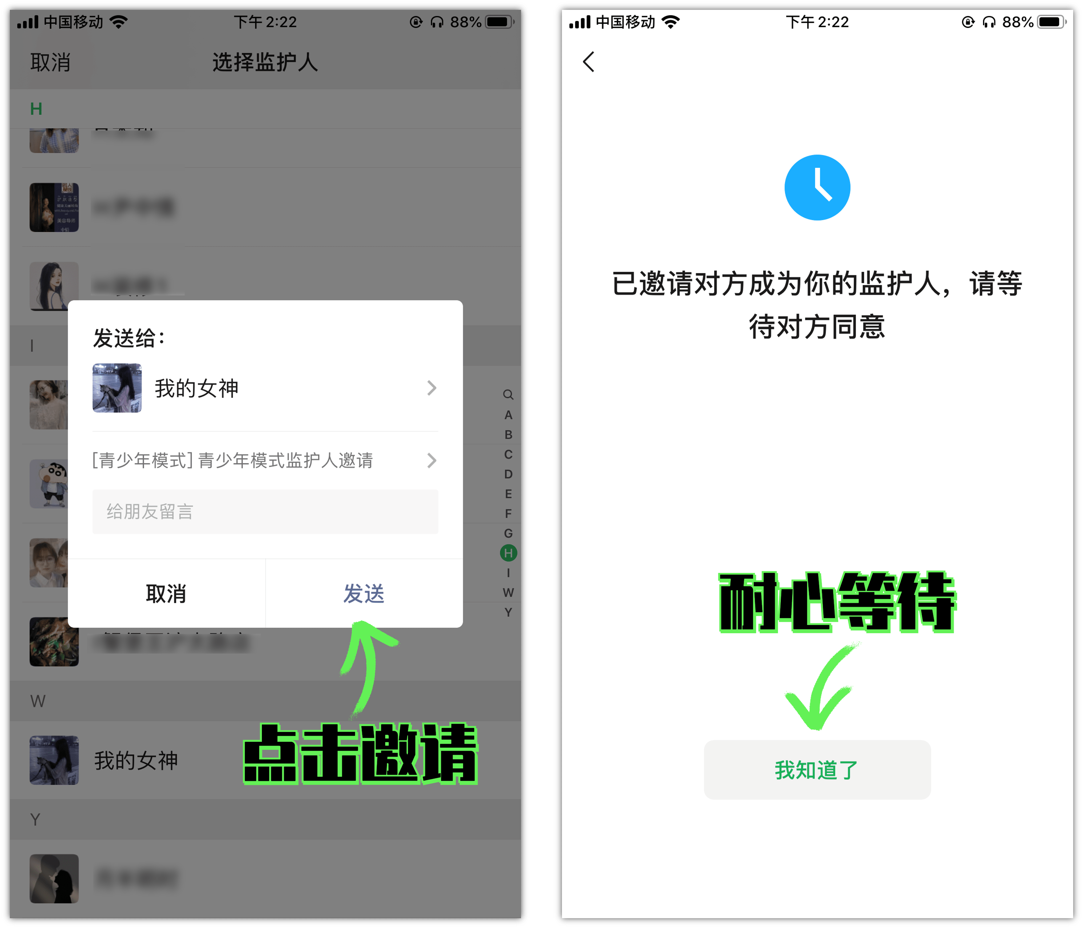接下來,系統會自動打開您的通訊錄。在通訊錄中,您可以找到您想要邀請的好友的聯系方式。請仔細查找并選擇一位重要的好友(建議選擇女朋友),然后點擊發送邀請。一旦對方同意了邀請,他們就可以加入青少年模式。