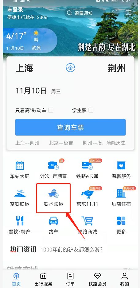 1、打開鐵路12306app,點擊首頁的鐵水聯運專區進入。