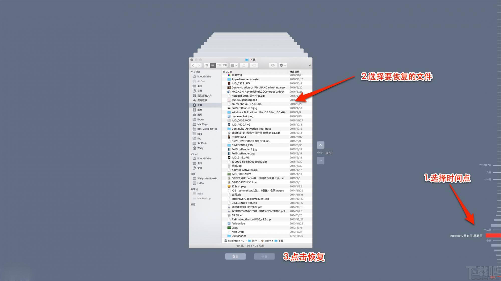 選擇恢復的時間點,與文件后點擊好恢復即可。