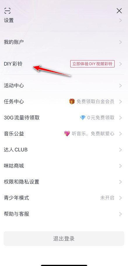 2、找DIY彩鈴設(shè)置界面,選擇進(jìn)入。