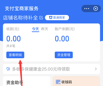 3、隨后點(diǎn)擊進(jìn)去,如圖位置即可查看到“當(dāng)天支付寶收款筆數(shù)”了。