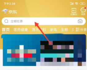 1、打開京東,點擊上方搜索欄輸入“京東大藥房”并點擊搜索;