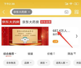 2、點擊上方的搜索結果,進入京東大藥房店鋪;