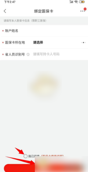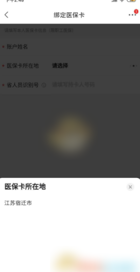 6、選擇醫保卡所在地和持卡人號碼后勾選“醫保卡使用說明”并點擊下方“綁卡并使用”即可綁定醫保卡。(醫保卡綁定僅限江蘇省宿遷市)
