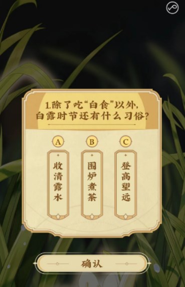 1.除了吃“白食”以外,白露時節還有什么習俗?【答案:A收清露水】