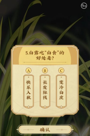 5、白露吃白食的好處是?【答案:快樂入秋】