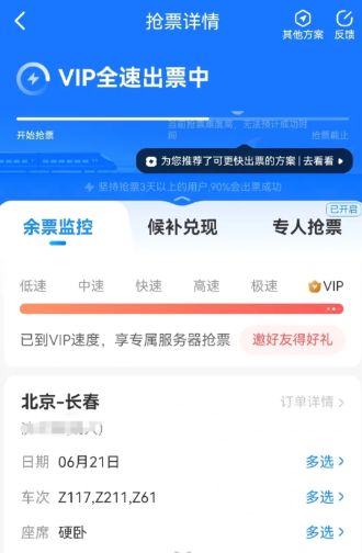 本次搶票經(jīng)驗總結(jié),知道端午火車票難搶臥鋪更難搶,從放票開始就使用智行搶票,開通了vip加速和3人專人搶票,智行候補顯示搶票率高,預計18日搶票成功,實際搶票失敗