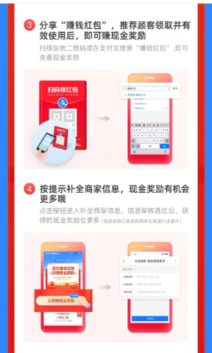第一步:在實體門店掃“賺錢紅包”貼紙,獲取紅包;
