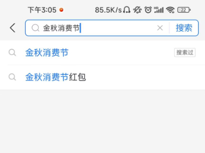 第一步:打開支付寶app,之后搜索金秋消費節(jié);