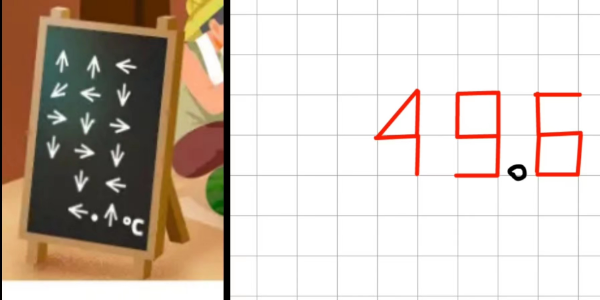 3、黑板上的箭頭其實提示的是天氣的度數,將其連接起來最終得到【49.6】;