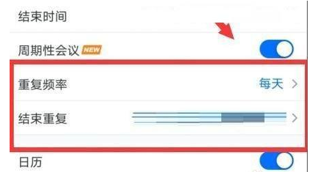 3、然后在打開的頁面中,可以進行重復頻率和結束重復進行設置。