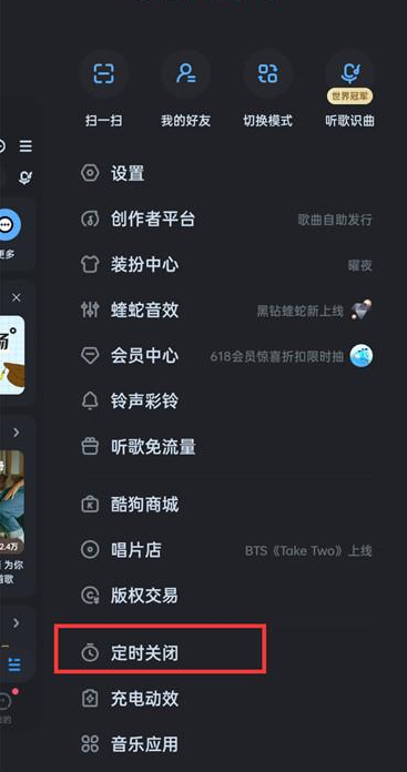 酷狗音樂怎么設置定時關閉然后退出
