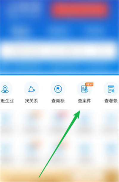 我們打開(kāi)企查查軟件,然后我們點(diǎn)擊首頁(yè)的查案件的功能,如圖所示。